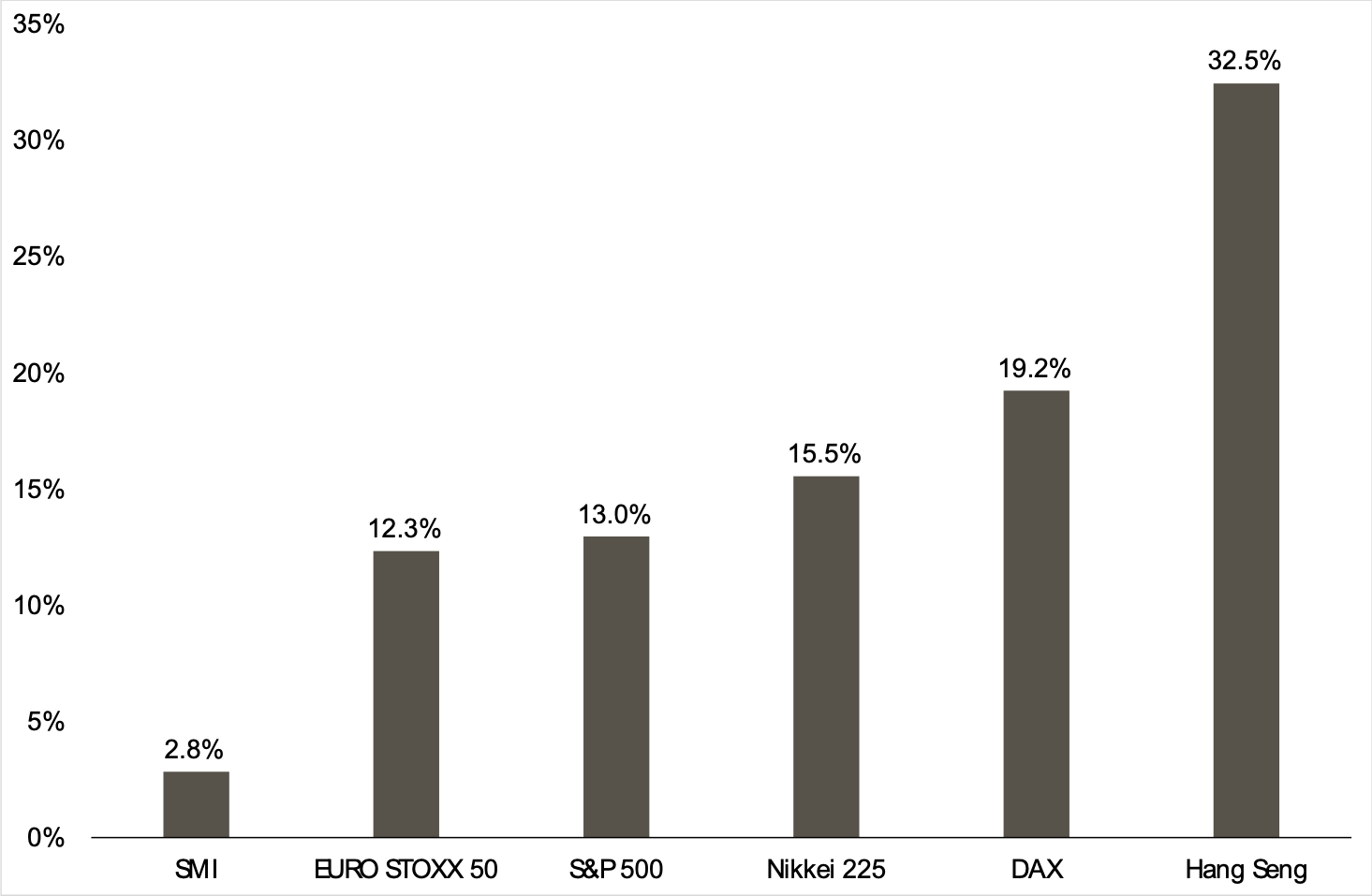 Am Mittwoch beginnt der Oktober und damit das Schlussquartal 2025. Auf dem Weg in Richtung Zielgeraden des Börsenjahres dürften Handels-, Geo- und Geldpolitik die bestimmenden Themen bleiben. Obwohl dieses Dreigestirn jede Menge Unabwägbarkeiten mitbringt, fällt die aktuelle Zwischenbilanz an vielen Märkten positiv aus. Besonders stark haben sich in den ersten drei Quartalen 2025 Aktien aus China entwickelt. Der Hang Seng® Index notiert nahezu ein Drittel über dem Schlusskurs des vergangenen Jahres. Damit schnitt der mit in Hongkong kotierten Aktien bestückte Gradmesser deutlich stärker ab, als der S&P 500® Index. Prozentual zweistellige Zugewinne zeigt das Ranking auch für EURO STOXX® 50, DAX® sowie Japans Leitindex Nikkei-225®. Derweil hat der SMI® im Vergleich mit anderen wichtigen Börsengradmessern das Nachsehen.*