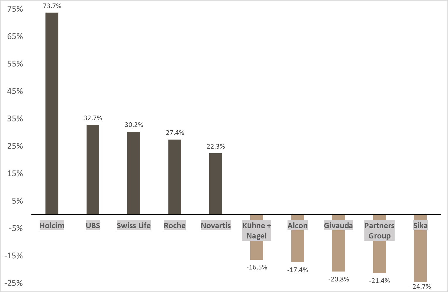 SMI®: Top- und Flop-Aktien 2025 (Angaben in %)*