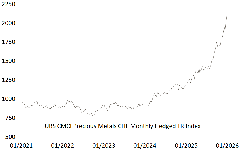 UBS CMCI Precious Metals CHF Monthly Hedged TR Index (5 Jahre, Angaben in CHF)*