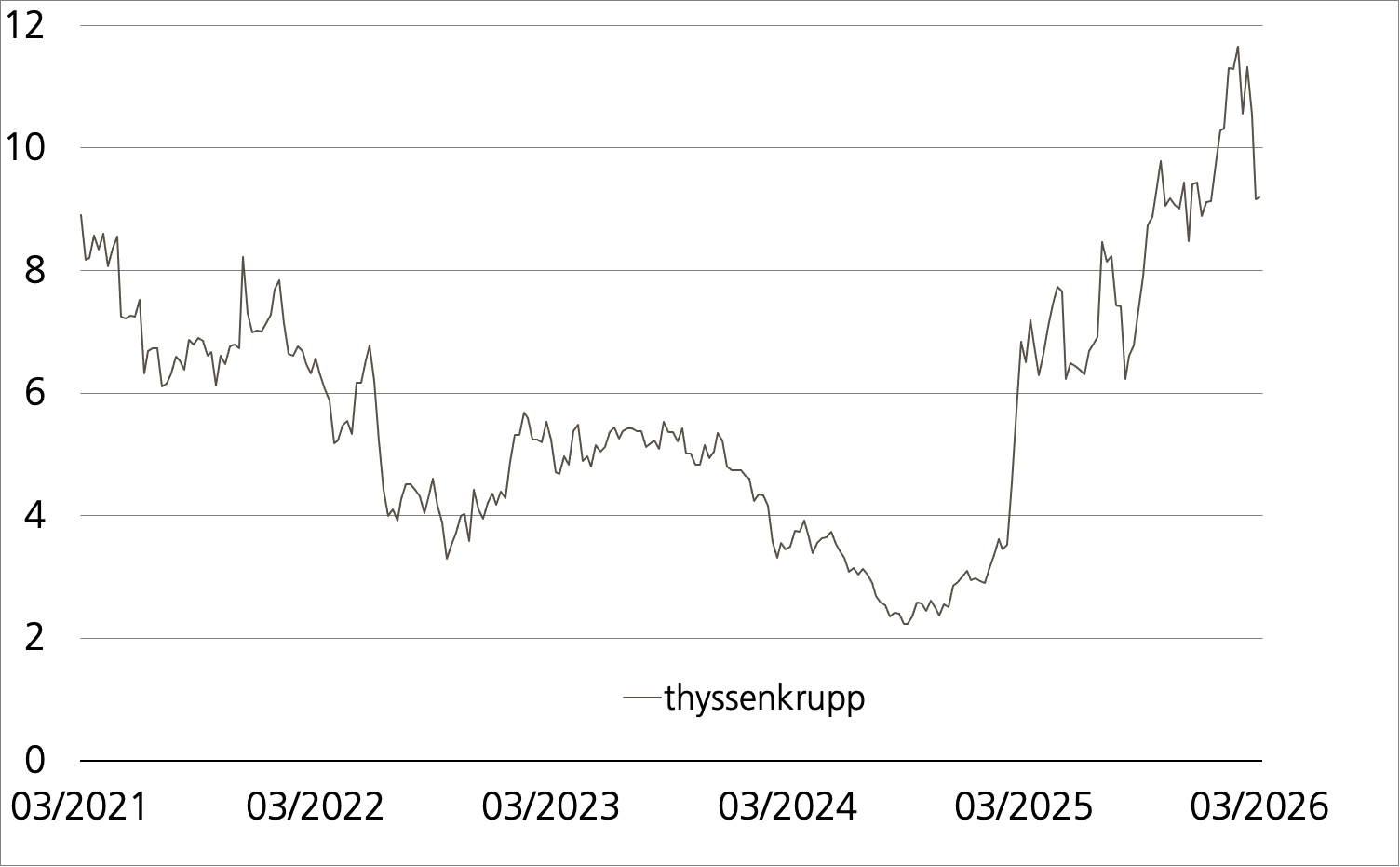 Risiken:Barrier Reverse Convertibles sind nicht kapitalgeschützt. Notiert thyssenkrupp während der Laufzeit einmal auf oder unter dem Kick-In Level (Barriere), kann die Tilgung am Verfalltag durch eine physische Lieferung des Basiswertes erfolgen (höchstens jedoch zum Nominalwert zuzüglich Coupon). In diesem Fall sind Verluste wahrscheinlich. Zudem trägt der Anleger bei Strukturierten Produkten das Emittentenrisiko, so dass das eingesetzte Kapital – unabhängig von der Entwicklung des Basiswertes – im Falle einer Insolvenz der UBS AG verloren gehen kann.