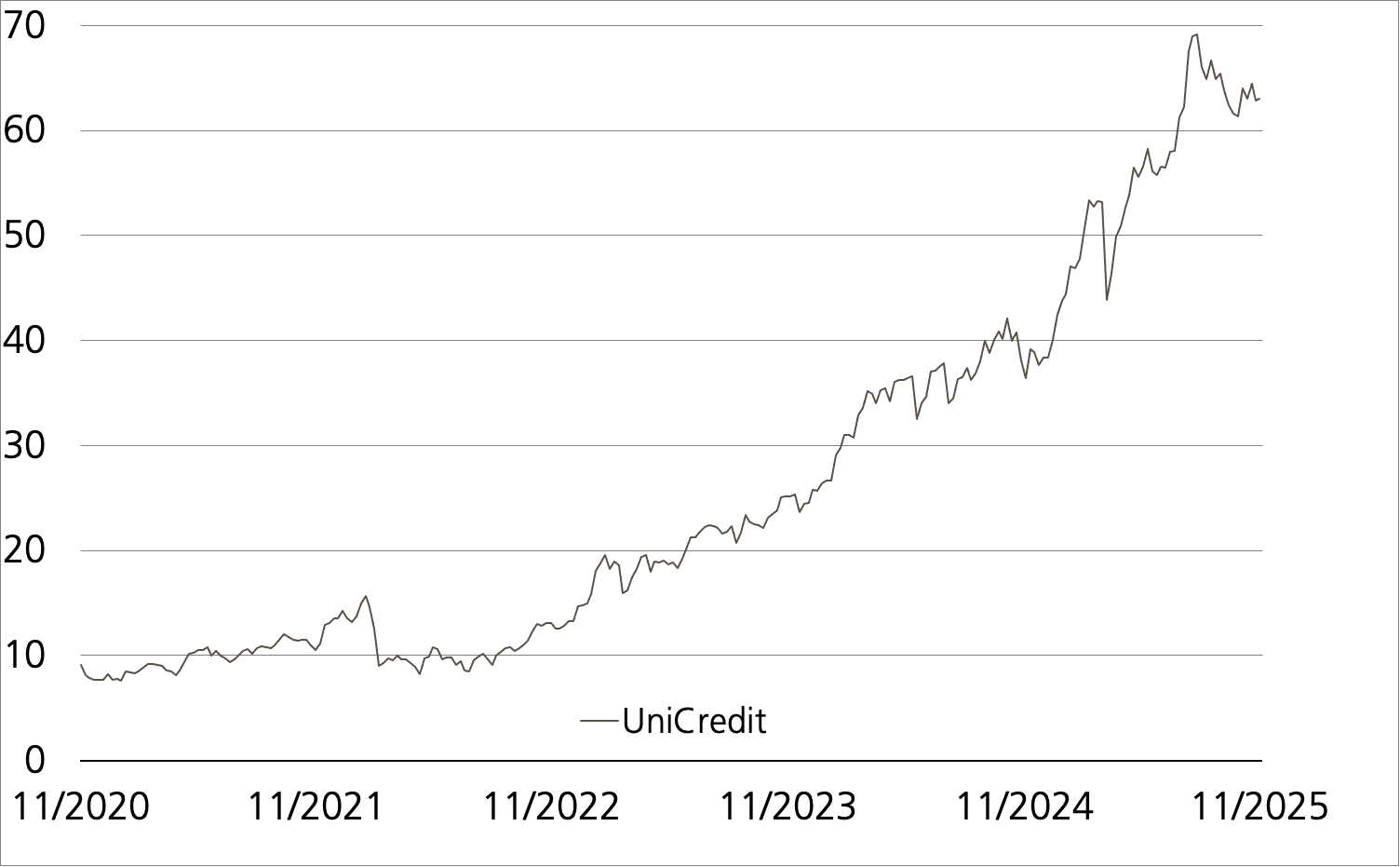 Chancen:Der Barrier Reverse Convertible (Symbol: LBLBDU) auf UniCredit bietet eine Alternative zum Direktinvestment in den Bankentitel. Am 10. März 2026 ist die erste Couponzahlung in Höhe von 8.25 Prozent p.a. fällig. Weitere fünf Ausschüttungen folgen mit einem Abstand von jeweils drei Monaten. In die Laufzeit von 18 Monaten startet die UniCredit-Aktie mit einer Barriere von 60 Prozent der Anfangsfixierung. Hält sich der Basiswert über dieser Marke, bekommen Anleger das Nominal am 10. Juni 2027 zu 100 Prozent überwiesen.