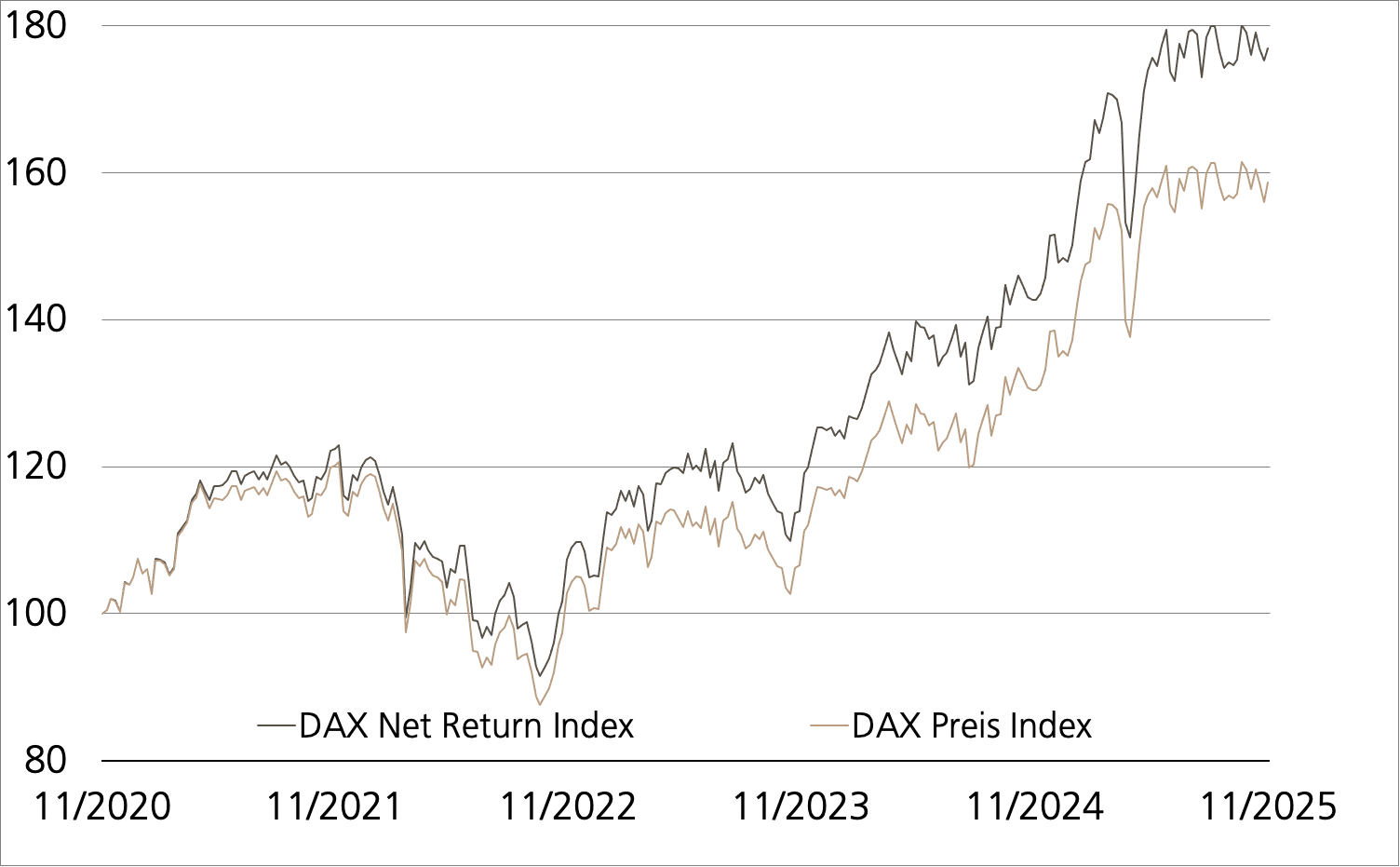 Am Dienstag, 11. November 2025, feierte Friedrich Merz seinen 70. Geburtstag. Rund 300 Gäste gratulierten dem deutschen Bundeskanzler im Berliner Reichstag. Der CDU-Politiker wollte kein grosses Aufheben um seinen Jubeltag machen. Für ihn sei es ein ganz „normaler Arbeitstag“, erklärte Merz. (Quelle: welt.de, Medienbericht, 11.11.2025) Fest steht, dass der Kanzler viel zu tun hat. Die von ihm geführte Koalition aus CDU/CSU und SPD möchte Deutschland modernisieren und die Wirtschaft in Schwung bringen. Im Mittelpunkt steht das «Sondervermögen für Infrastruktur und Klimaneutralität». Mit in Summe 500 Milliarden Euro sollen unter anderem kaputte Strassen und marode Brücken saniert oder das Breitbandinternet ausgebaut werden. (Quelle: bundesregierung.de, Aktuelles, 02.10.2025) Die deutsche Wirtschaft könnte einen Impuls gut vertragen. Nachdem das Bruttoinlandsprodukt (BIP) zwei Jahre in Folge geschrumpft ist, erwartet die Bundesregierung für 2025 ein Mini-Wachstum von 0.2 Prozent. Angeschoben von den geplanten staatlichen Sonderausgaben soll die grösste Volkswirtschaft Europas im kommenden Jahr um 1.3 Prozent expandieren. Für 2027 erwartet die Regierung ein Wachstum von 1.4 Prozent. Bei den Verbraucherpreisen rechnet sie in ihrem aktuellen Herbstgutachten für das kommende Jahr mit einem Anstieg von 2.0 Prozent. (Quelle: Bundesministerium für Wirtschaft und Energie, Medienmitteilungvom 08.10.2025) Damit würde sich die Teuerung genau auf dem von der Europäischen Zentralbank angestrebten Niveau bewegen. Mit einer Serie an Zinssenkungen hat die EZB ihren Leitsatz auf aktuell 2.0 Prozent halbiert und der Wirtschaft damit unter die Arme gegriffen. Am 18. Dezember kommen die Währungshüter zum letzten Mal in diesem Jahr zusammen. Noch ist offen, ob der EZB-Rat die Füsse, wie schon an den vergangenen drei Sitzungen still hält, oder er die Zinsschraube noch einmal lockert. (Quelle: Reuters, Medienbericht, 03.11.2025)Derweil geht die Berichtssaison im DAX™ auf die Zielgeraden. Für ein finales Highlight könnte Siemens sorgen. Der Industriekonzern hat heute morgen (nach Redaktionsschluss) die Bilanz für das Geschäftsjahr 2024/25 (per 30. September) veröffentlicht. Seit 8:30 Uhr läuft der Kapitalmarkttag. Dieser Anlass könnte Klarheit zum Umgang mit der Medizintechnik-Tochter Siemens Healthineers bringen. Mit einem Abbau der rund 35 Milliarden Euro schweren Beteiligung würde Siemens Spielraum für ein verstärktes Engagement in den Bereichen Industriesoftware und Künstliche Intelligenz gewinnen. (Quelle: Reuters, Medienbericht, 10.11.2025)
