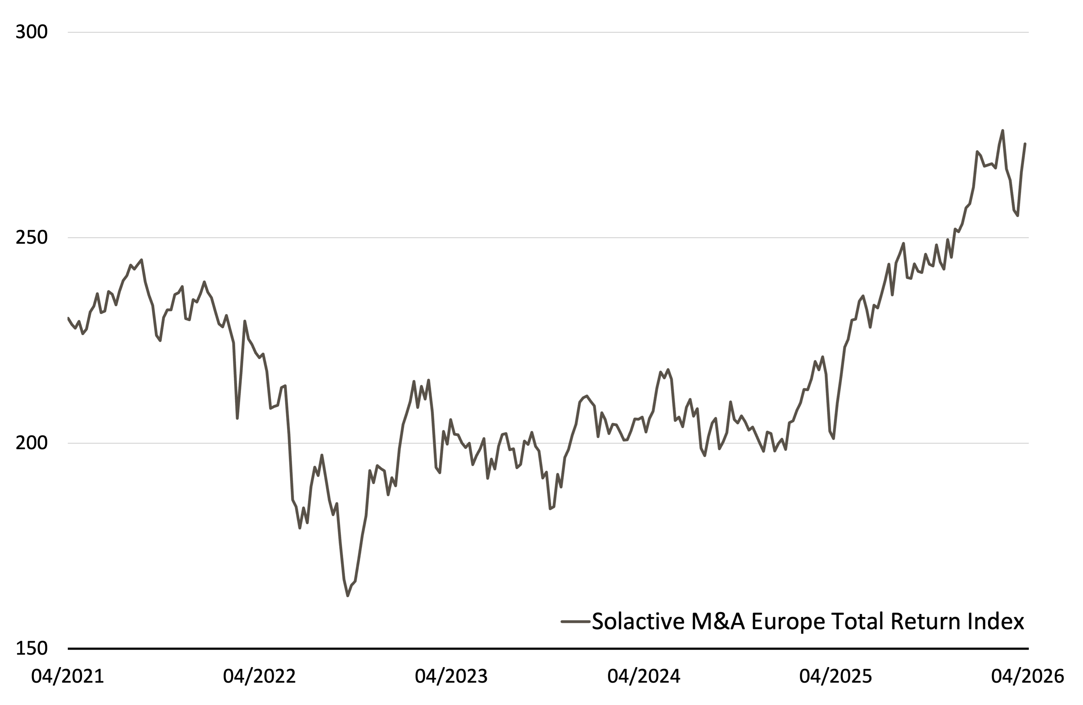 Chancen: Für Anleger ergibt sich aus dieser Entwicklung ein strategischer Ansatz: Wer an der anhaltenden Dynamik im europäischen M&A-Markt partizipieren möchte, kann dies effizient über ein Tracker-Zertifikat (Symbol: MANDAU) auf den Solactive M&A Europe Index umsetzen. Das Barometer bündelt gezielt Unternehmen, die potenzielle Übernahmeziele darstellen. Damit bildet er systematisch jene Marktsegmente ab, in denen sich M&A-Prämien durch Aufschläge bei Übernahmeangeboten realisieren lassen. Gerade in einem Umfeld steigender Megadeals und zunehmender sektoraler Transformation kann diese Fokussierung einen Vorteil bieten. Die Verwaltungsgebühr beträgt jährlich 0.75 Prozent. Da es sich beim Basiswert um eine Total Return-Variante handelt, profitieren Anleger von allfälligen Dividendenzahlungen. Ausschüttungen der enthaltenen Unternehmen werden direkt in den Index reinvestiert.
